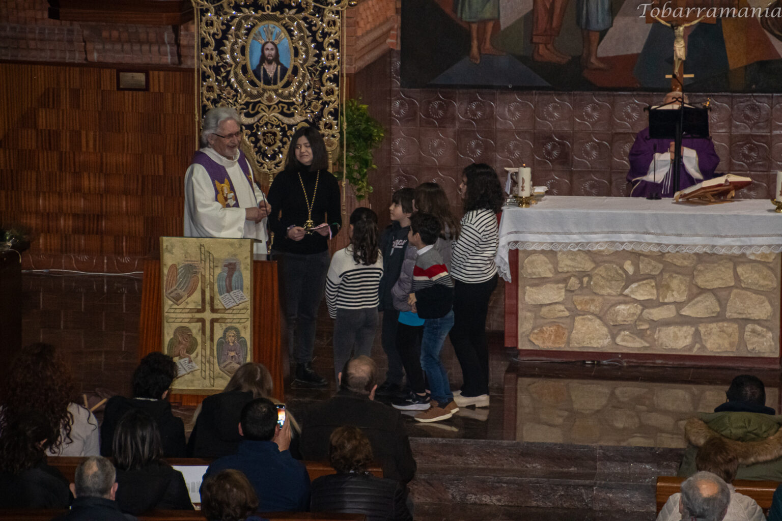 Las estaciones se leyeron desde el atril del presbiterio y en casi todas las ocasiones participaron las mismas personas que hubieran leído en la calle esa misma estación.