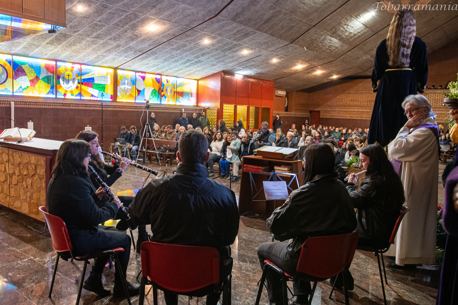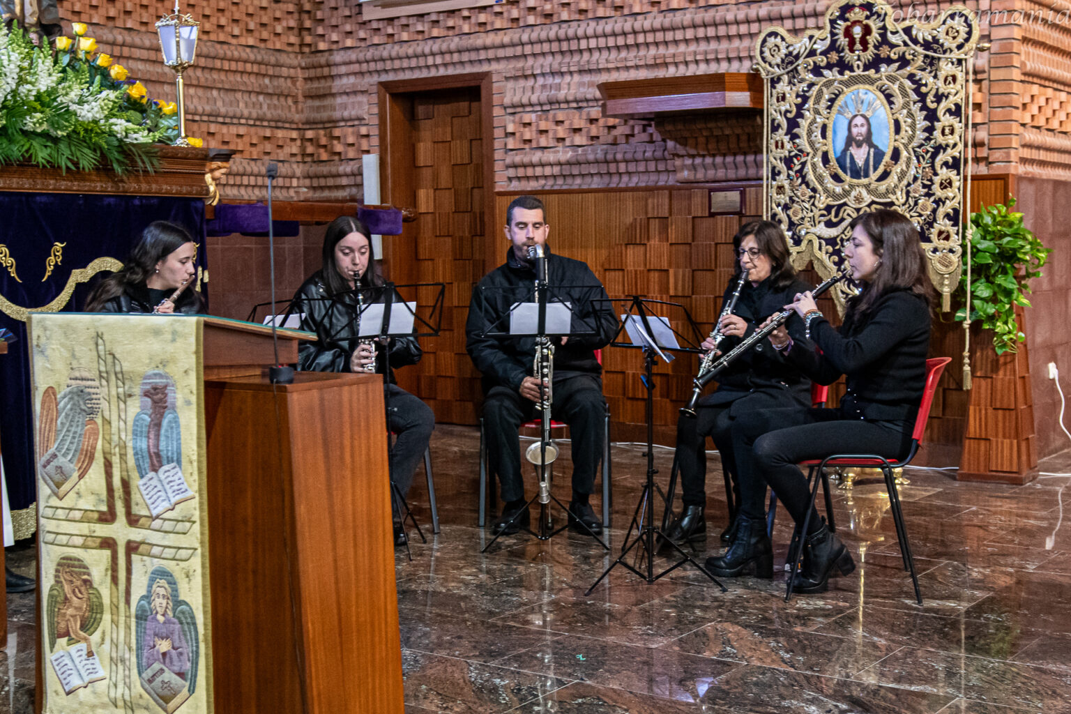La lectura fue amenizada con la intervención en varias ocasiones el ensemble musical que iba a acompañar a Jesús del Paso en la procesión compuestos por músicos de Tobarra.